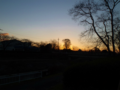 今朝の散歩時の一枚。7時前はまだ薄暗く、今日は天気は良かったのできれいな朝焼けを見ることができました。